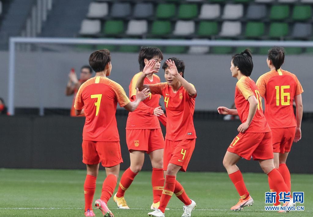 4月13日,中國隊(duì)球員王霜在比賽中慶祝進(jìn)球。新華社記者楊磊攝